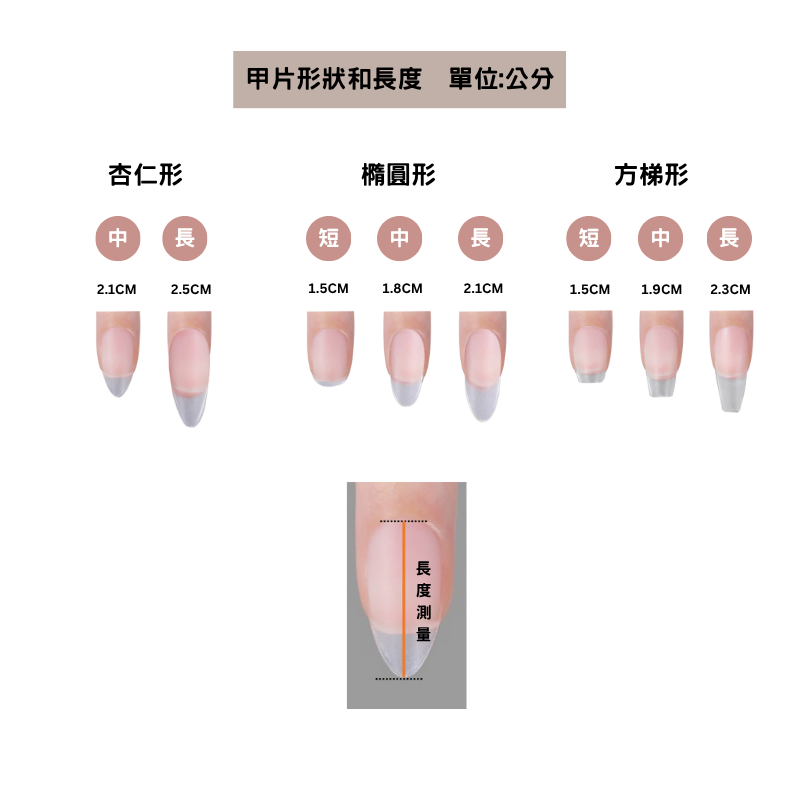 客製款可測量自己的尺寸及適合的甲型做訂製
